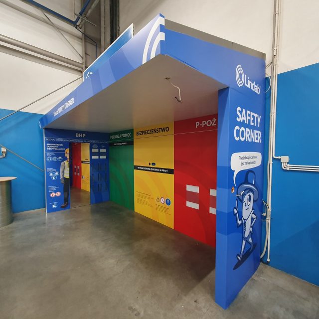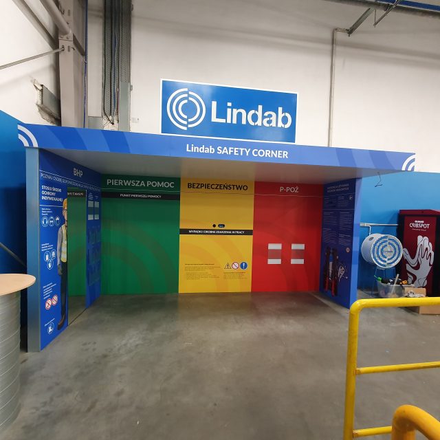 The application from Lindab Polska ( an international manufacturer of gutter, ventilation and roofing systems) came to us with a very specific purpose: the client was looking for a contractor who would help create a modern, aesthetic and functional safety corner in one of their production plants.