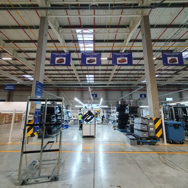 Na hali wdrożono czytelne, trwałe oznaczenia pól odkładczych i stref roboczych. Każdy obszar został zaplanowany w taki sposób, aby ułatwić identyfikację miejsc odkładania komponentów, gotowych produktów i materiałów w toku. Dzięki wykorzystaniu wysokiej jakości taśm i piktogramów Tagatic, oznaczenia są trwałe, odporne na ścieranie i w pełni zgodne z normami BHP.